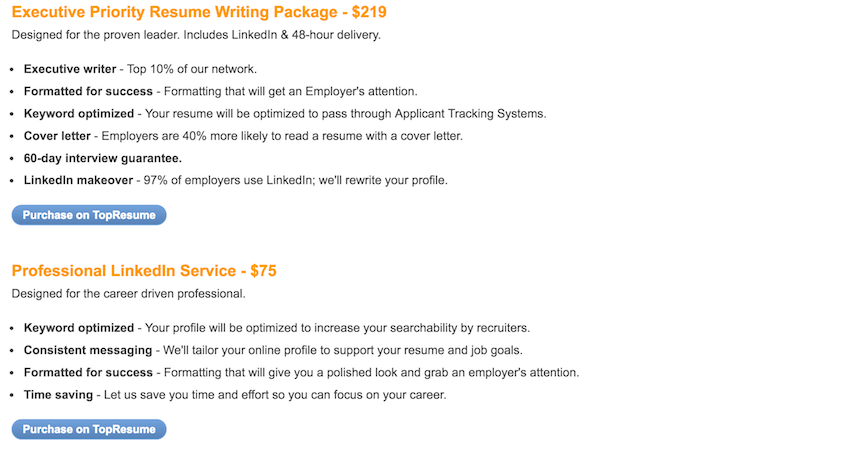 Resume2Hire.com is a parnet of TopResume company. It's another good option for when you're in need of a resume writing or other job application related service such as LinkedIn and cover letters.